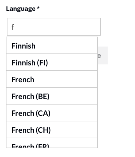 - 言語を入力します。入力すると、一致する言語の一覧が表示されます。