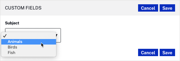 リスト型のユーザー設定フィールドには、追加の値を追加できます。カスタムフィールド名のリンクをクリックし、値を追加し、[ リストに追加] をクリックします。完了したら、[ フィールドを保存] をクリックします。