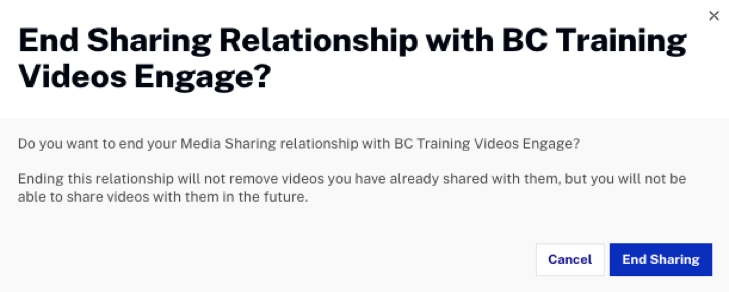 )をクリックします。共有関係の終了を確認するダイアログが表示されます。