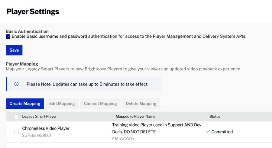 プレーヤーマッピング -ダイレクト移行ツールで使用するプレーヤーマッピングを作成できます。ダイレクト移行ツールは、スマートプレーヤーではなく Brightcove Player をロードするように指定する方法を提供します。