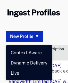 [Ingest Profiles] 管理ページを使用して、不要になった取り込みプロファイルを削除できます。デフォルトの取り込みプロファイル(Standard VOD とマークされている)のセットは削除できませんが、必要でない場合は非表示にできます。