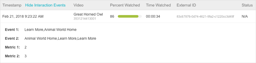 カスタム イベントやメトリクスが視聴イベントに紐づいている場合、インタラクション イベントの表示 リンクが有効になります。