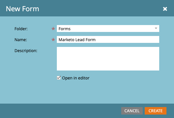 - フォームの名前を入力し、[ 作成] をクリックします。