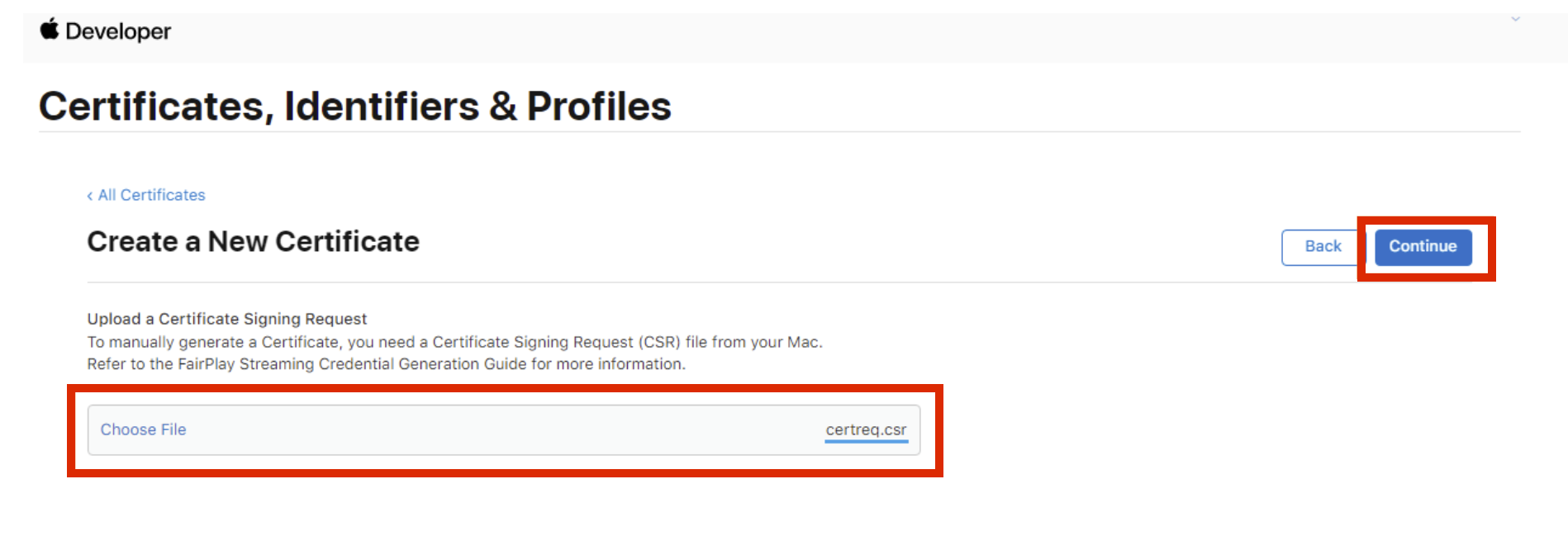 ステップ 3: Apple ディベロッパー ポータルで FPS 証明書を作成