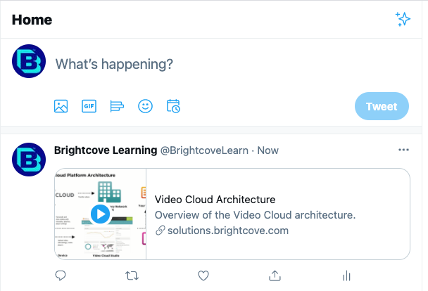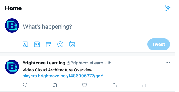 デフォルトでは、視聴者がBrightcoveプレーヤーのソーシャル共有機能を使用して動画をツイートすると、動画を含むページのURLが視聴者のTwitterフィードに表示されます。