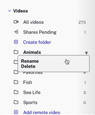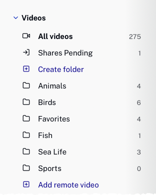 すべてのフォルダは左側のナビゲーションに表示されます。フォルダ名の後の数字は、そのフォルダ内の動画の数を示します。