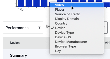 - 選択すると、 [ビデオ別のパフォーマンス]ディメンションが表示されます。