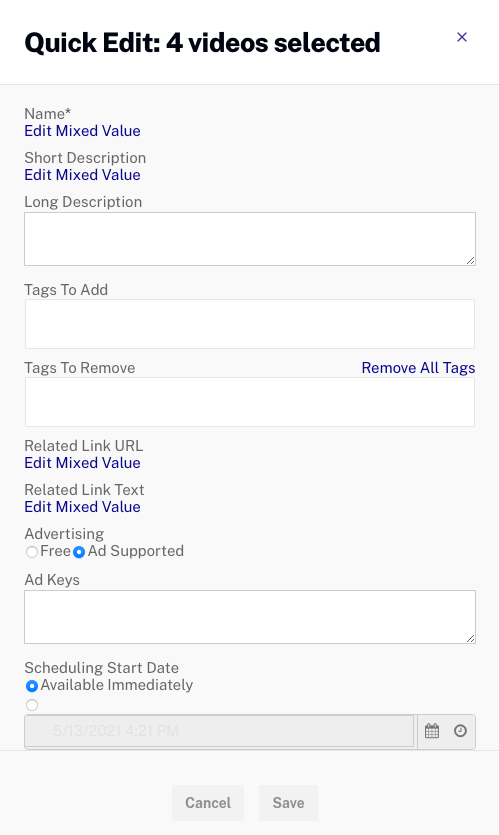このトピックでは、Mediaモジュールのクイック編集機能を使用して複数のビデオのビデオプロパティを編集する方法について学習します。