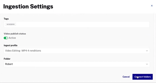 - フォルダに大量の動画を追加した場合、それらは 50 件ずつバッチ処理され、順次取り込まれます。すぐに取り込みたい 1〜2 本の動画がある場合は、Studio または Dynamic Ingest API を使用して追加することで、フォルダ内の動画よりも優先的に取り込むことができます。
