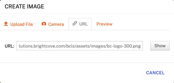 - ファイルを選択をクリックし、画像を参照して選択するか、URL タブをクリックして画像ファイルのURLを入力します。