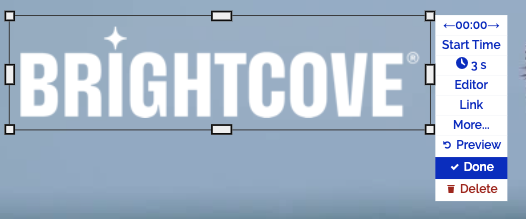 画像オーバーレイは、再生中のビデオに画像を表示するために使用します。オーバーレイはクリック可能で、クリックすると別のブラウザ ページが開きます。次の例では、画像オーバーレイ(Brightcoveのロゴ)は動画の 75% の時点に表示され、動画の最後まで表示されます。オーバーレイをクリックすると、新しいブラウザ タブでリンク(www.brightcove.com)が開き、動画が一時停止します。