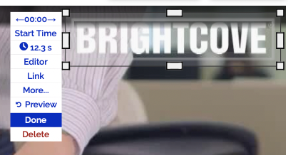 - オーバーレイをドラッグして、"ホットスポット" にしたい場所にサイズを合わせます。この例では、オーバーレイはビデオに表示されるロゴ画像をカバーします。