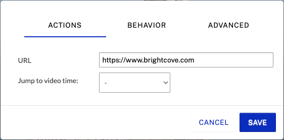 - BEHAVIOR (挙動)タブをクリックし、Pause on video click (ビデオクリック時に一時停止)に設定します。