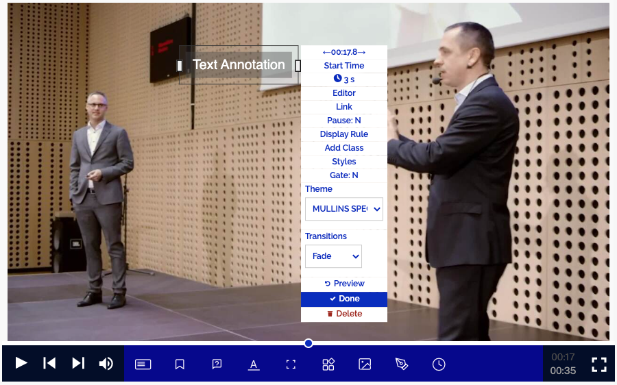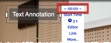 Start Time (開始時間)は、注釈の開始時間を制御します。 右矢印をクリックすると開始時間を1秒進め、左矢印をクリックすると戻すことができます。