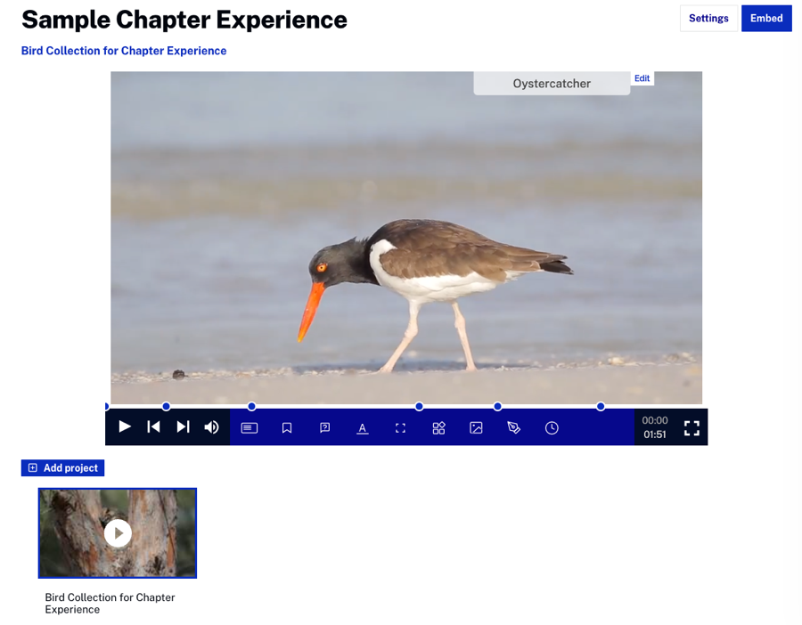 エクスペリエンスが埋め込まれるかプレビューされると、チャプターがプレーヤーの横に表示されます。チャプターをクリックすると、そのチャプターに対応するビデオにジャンプします。
