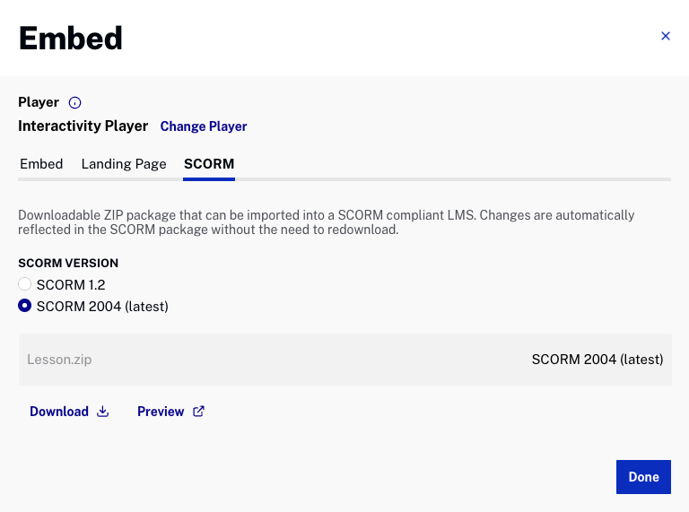 - ダウンロード をクリックして、SCORM パッケージをダウンロードします。