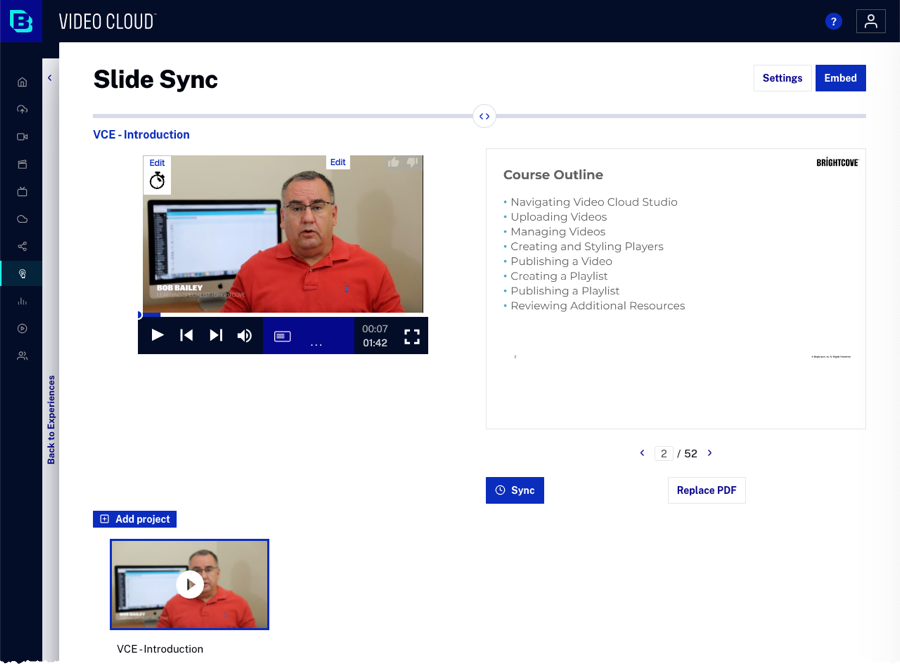 エクスペリエンス とは、動画プレーヤの外部でプレーヤと動的に相互作用する他の要素(同期スライドや e コマース カートなど)と組み合わせたプロジェクトのことです。