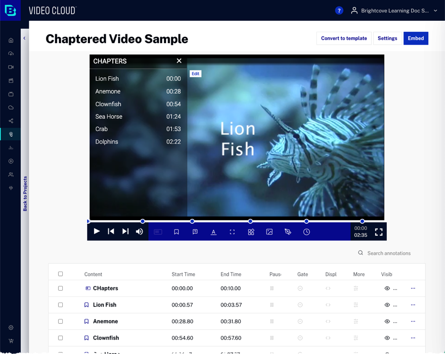プロジェクト は、注釈付きの単一のビデオです。最もよく使われる動画タイプです。