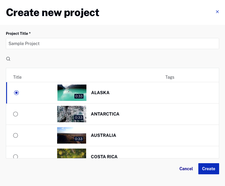 プロジェクト設定を使用して、プロジェクト タイトルの編集、タグの追加、テンプレートの追加、カスタムCSSファイルの割り当て、およびプロジェクトに関連付けられたビデオの差し替えを行うことができます。