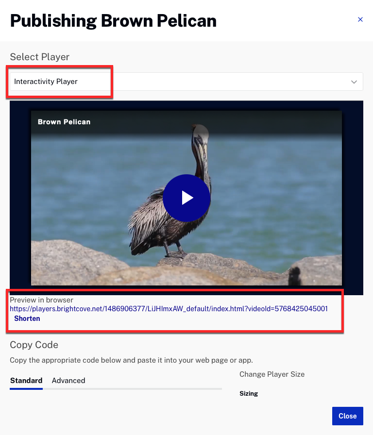 - プレビュービデオを再生します(数秒間再生するだけで十分です)。これにより、Brightcove Interactivity にプロジェクトが自動作成されます。