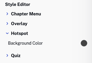 ホットスポットのスタイルを設定するには、左のナビゲーションで ホットスポット オプションを展開してください。以下のスタイリングオプションが利用可能です: