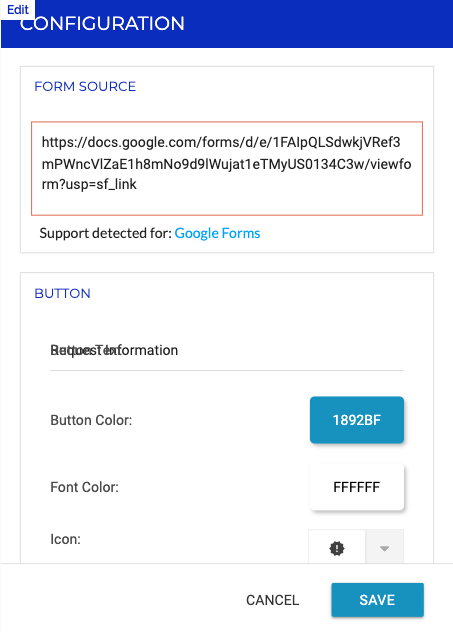 - FORM SOURCE (フォーム ソース)フィールドにフォームのURLを貼り付けます。URLが公開されていることを確認してください。