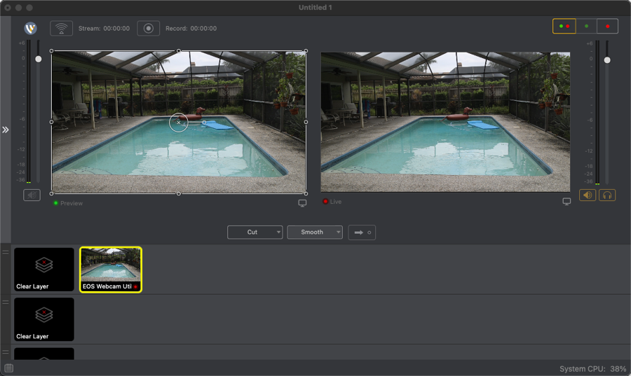 )をクリックして、カメラ映像をライブショットにします。 - 選択した映像ソースがプレビューウィンドウに表示されていることを確認します。
