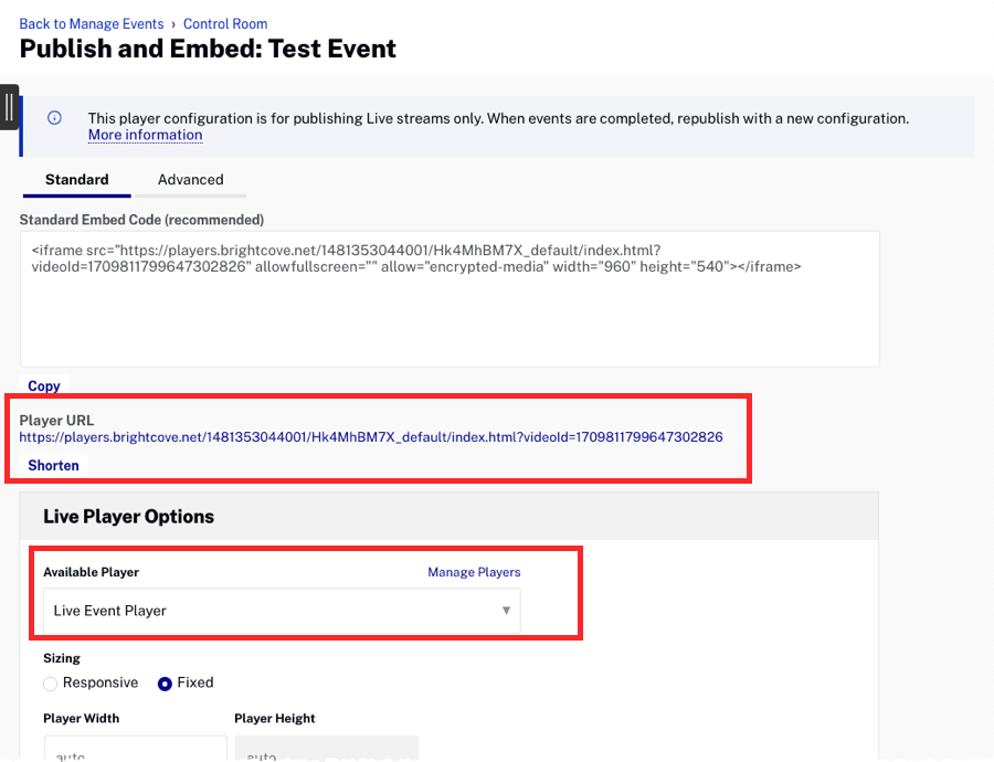 ライブイベントの埋め込みコードを生成するには、以下の手順に従ってください: