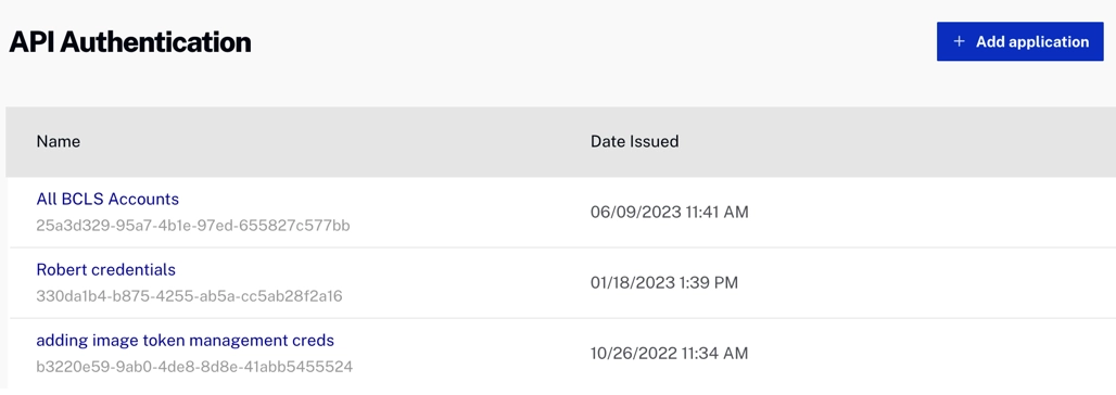 - API 認証 をクリックします。API認証ページが開き、現在のクライアント登録が表示されます。