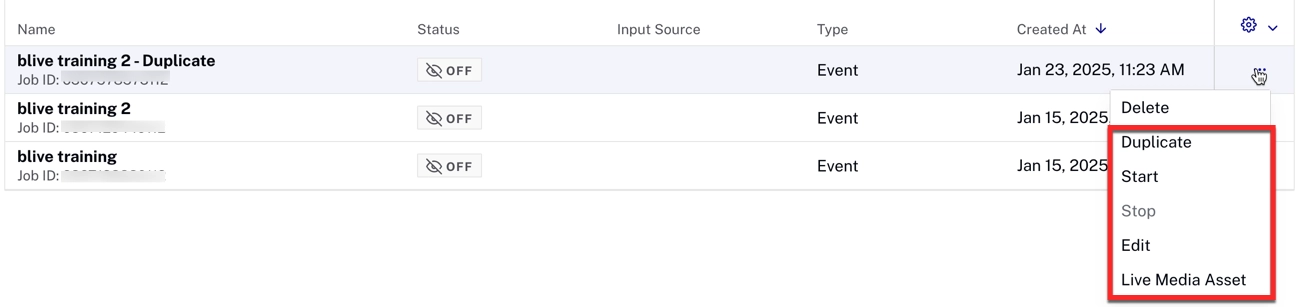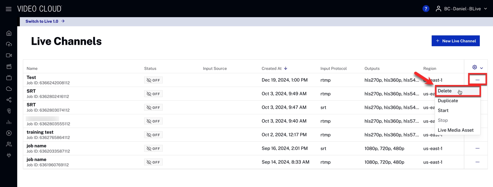 - ライブ チャンネル名の横にある 3 点アイコン (...) をクリックします。