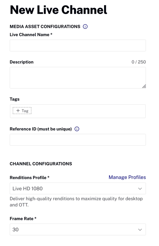 2種類のオプションが表示されます。契約内容により、イベント チャンネル、リニア チャンネル、またはその両方の作成が可能です。通常、イベント チャンネルは単発または定期的な短時間イベント用、リニア チャンネルは 24時間365日 稼働のライブ用に使用されます。課金方法が異なるため、詳細は弊社担当営業までお問い合わせください。