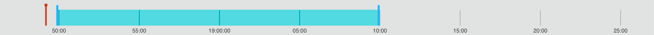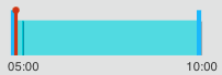 プレイヘッドは、プレーヤーが再生している時間位置を示すインジケーターです。フォーカス タイムライン上では、赤い線の上に赤い円が表示され、コンテキスト タイムライン上では赤い縦線で示されます。
