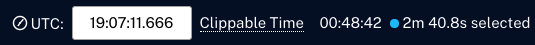クリッピング インターフェース内のすべての時間は、Brightcove に受信されたビデオデータの UTC 時刻を基準としています。これは、VOD ウィンドウ( 24 時間以上実行)を超えたストリームに対応するために必要な調整です。ビデオがこのウィンドウを超えた場合、プレーヤーから取得される時間はクリップの作成に信頼できる基準とはなりません。