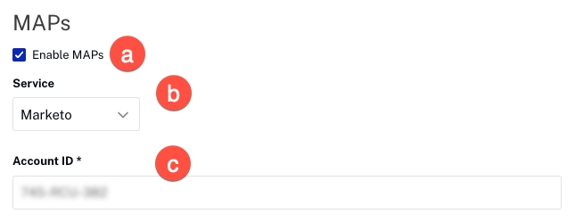 - サービス ドロップダウンからサードパーティー サービスを選択します (Hubspot、Marketo)。