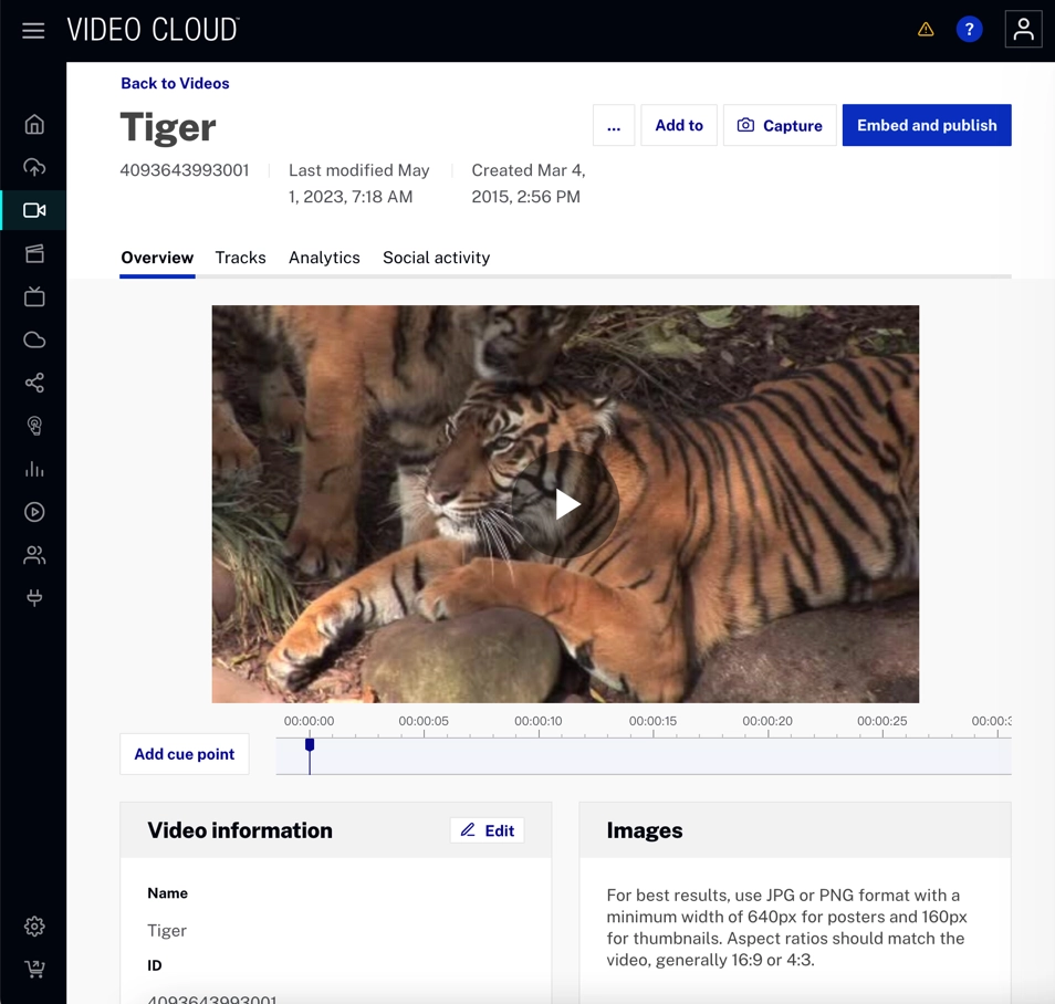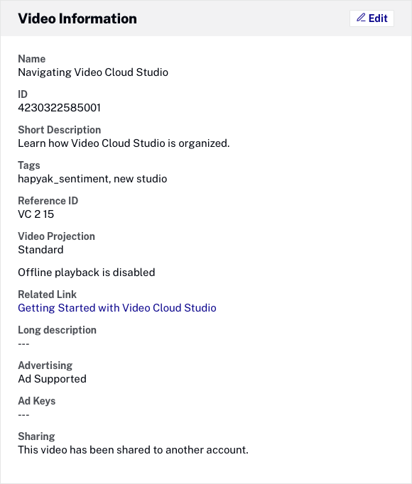 - ID - システムによって割り当てられた動画ID(すべての Video Cloud アカウントで一意)。