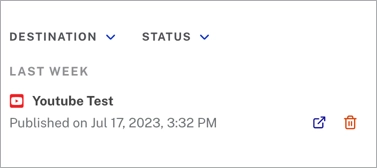 [ソーシャル アクティビティ]タブでは、ソーシャル投稿の情報、配信先、ステータスが表示され、投稿内容を確認したり削除することもできます。