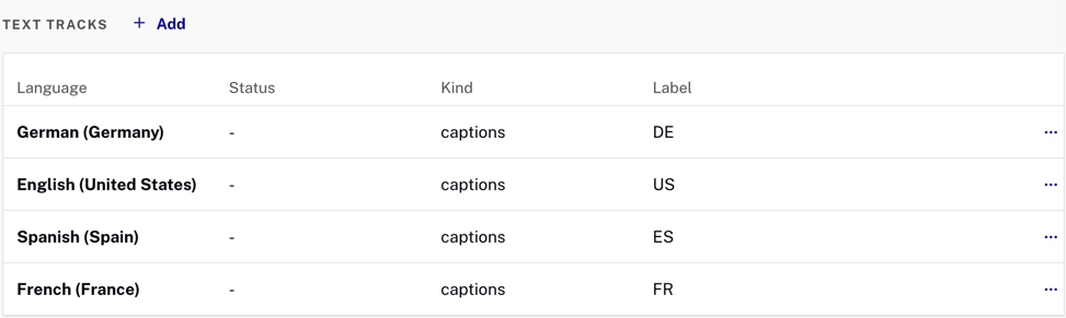 [テキスト トラック]セクションでは、動画に字幕やキャプションを追加することができます。設定方法については、Media モジュールを使った字幕の追加をご覧ください。