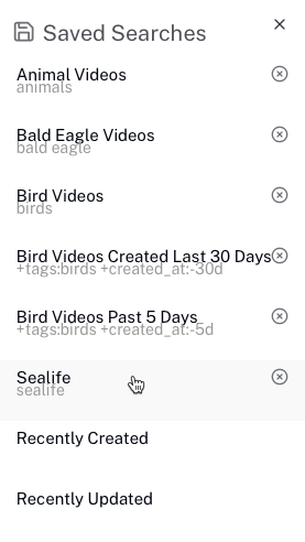 保存した検索を削除するには、検索の横にある削除アイコン(