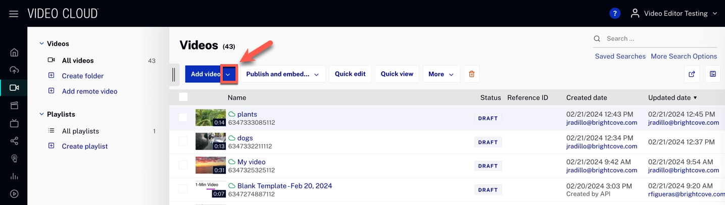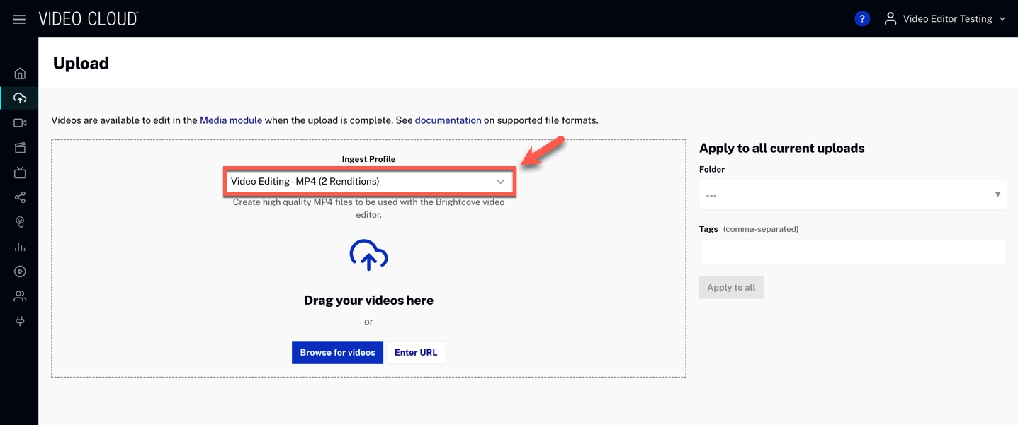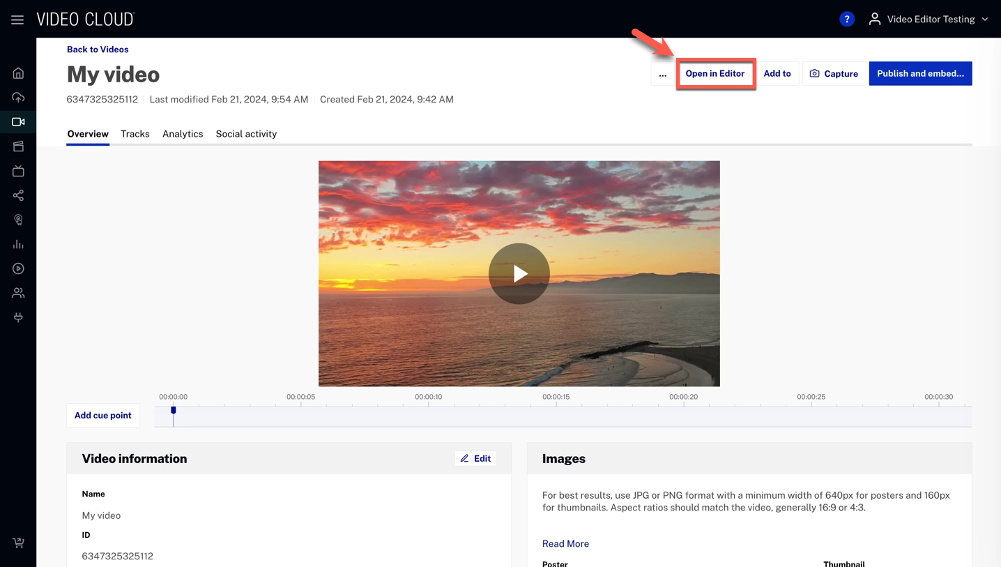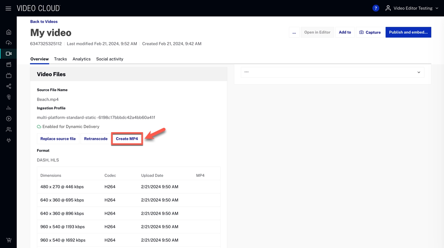Brightcove ビデオ エディターを使用するには、ビデオに MP4 レンディションが含まれている必要があります。