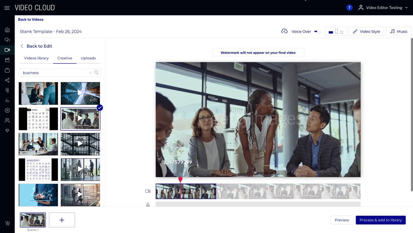 - テンプレートから編集していた場合、最終的な動画が公開されるまで、下書きには Video Cloud の完全な機能がありません。