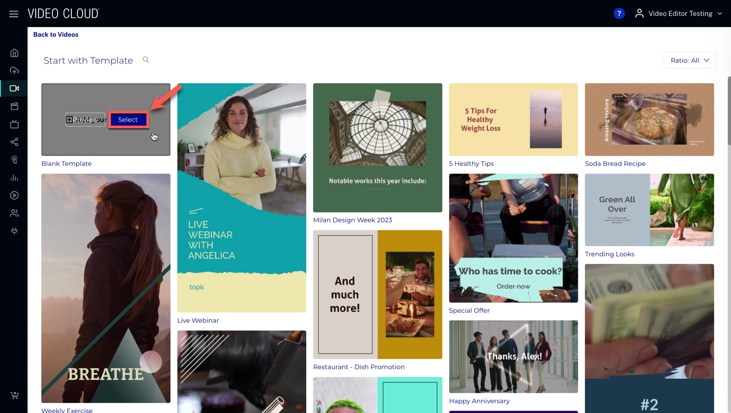 ゼロから新しいビデオを作成することも、利用可能な多数のテンプレートのいずれかを使用することもできます。横長、縦長、正方形のアスペクト比のテンプレートを使用できます。