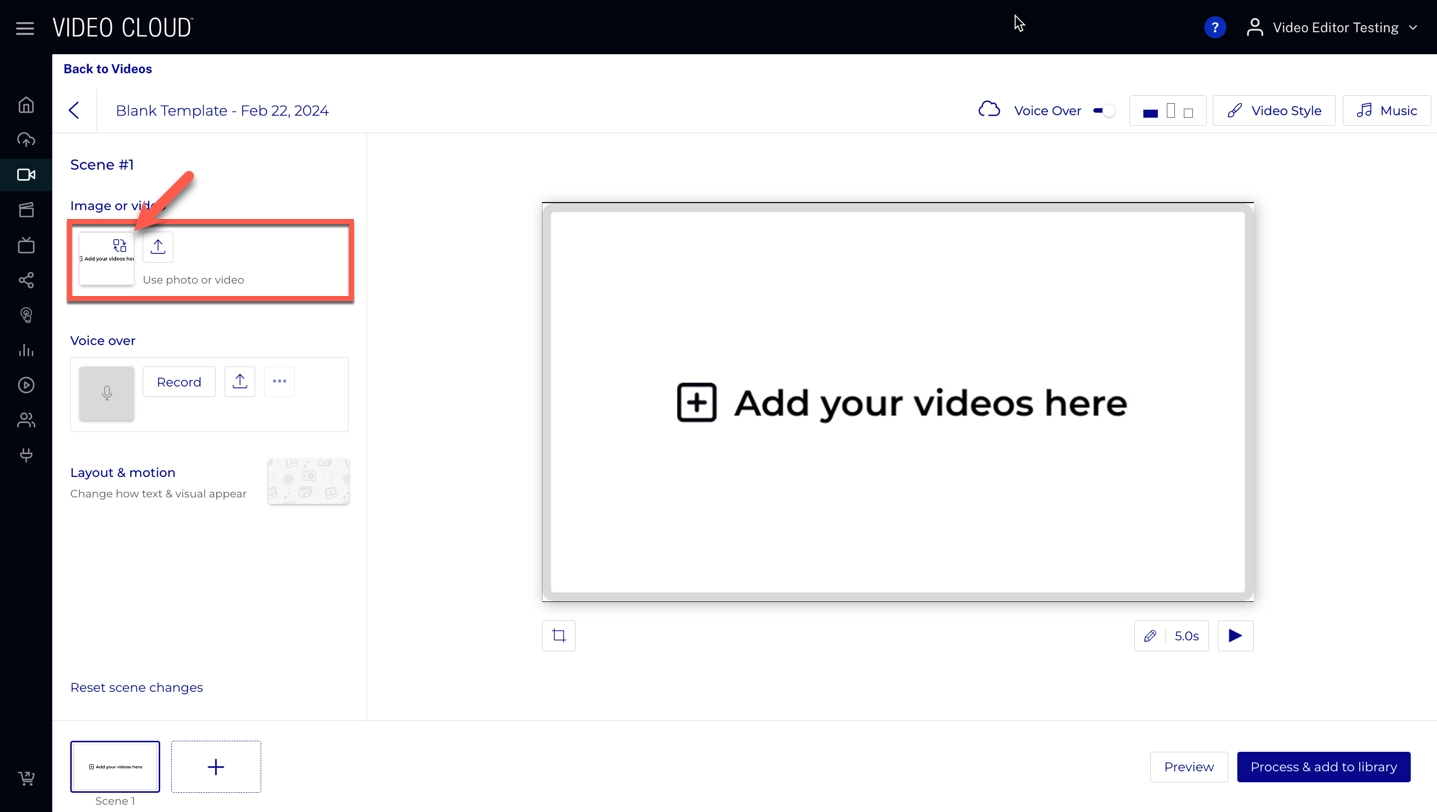 このプロセスにより、ビデオまたは画像アセットをシーンに追加できます。
