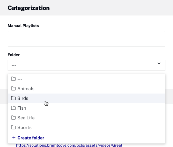 動画プロパティを編集して、フォルダーを割り当てることで動画をフォルダーに追加できます。