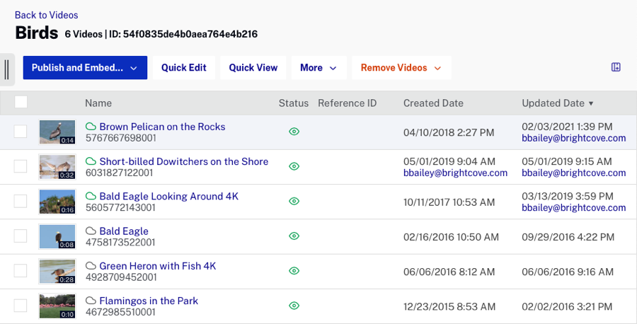 - サイドナビゲーションパネルの すべての動画 をクリックして、すべての動画を表示します。