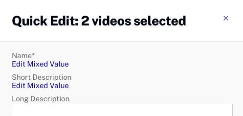 - 少なくとも1つの動画にプロパティの値が設定されている場合、混在する値を編集 が表示されます