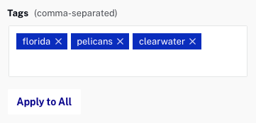 タグは、アップロードされた動画に割り当てることもできます。ビデオに割り当てるタグのコンマ区切りリストを入力します。