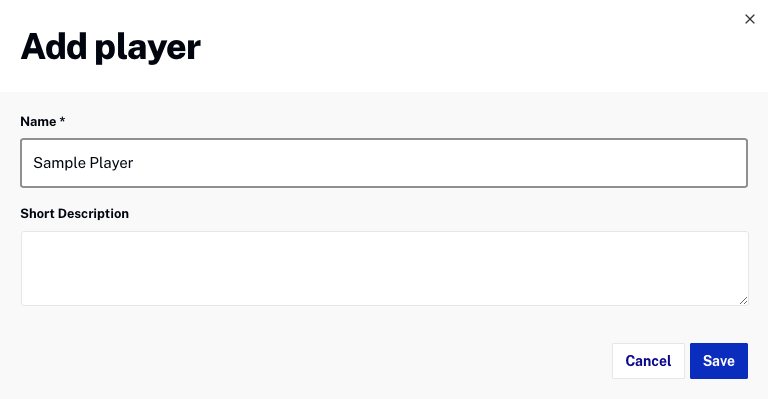- プレーヤーの名前と簡単な説明を入力し、 をクリックします。