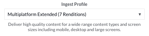 Video Cloudサブスクリプションによっては、カスタムの取り込みプロファイルを作成して、低品質のビデオレンディションの一部を削除することもできます。標準の取り込みプロファイルの詳細については、「動的配信およびコンテキスト対応エンコーディングの標準取り込みプロファイル」を参照してください。カスタマイズした取り込みプロファイルの作成については、「動的配信用の取り込みプロファイルの作成」を参照してください。