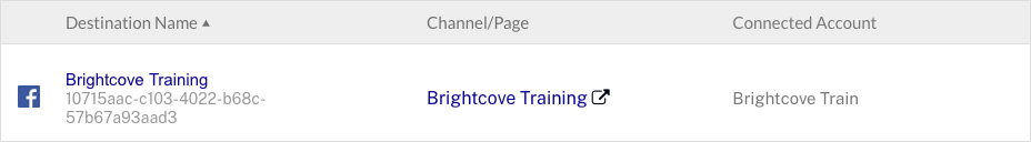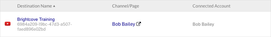 [ 宛先名 ] をクリックして、宛先を編集します。[ チャンネル/ページ]列のリンクをクリックして、別のブラウザータブで YouTube チャンネルを開きます。